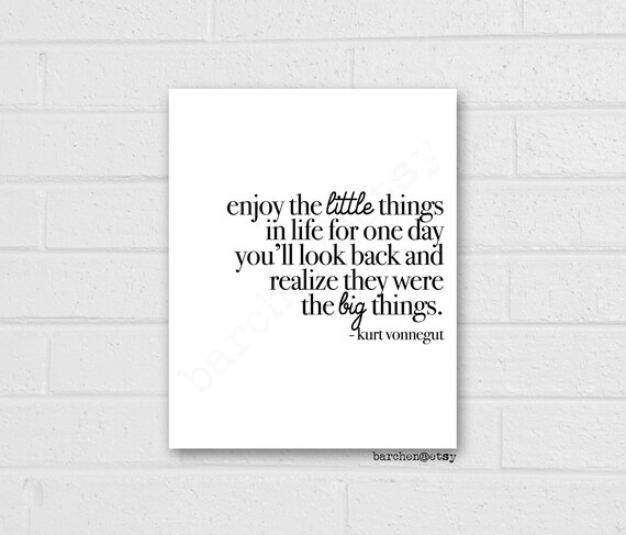 Buy Kurt Vonnegut Enjoy the Little Things in Life Quote - Unframed Print. T-shirts posters stickers home decor and more designed and sold by. Enjoy the little things in life for one day youll look back and realize Enjoy the little things in life for one day youll look back and realize they were big things.
